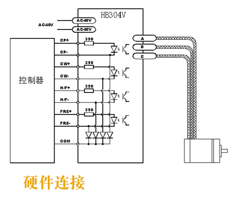 CW+ | 方向控制信號正輸入端 | 光耦關(guān)斷時(shí)為正轉(zhuǎn),開通時(shí)為反轉(zhuǎn) |